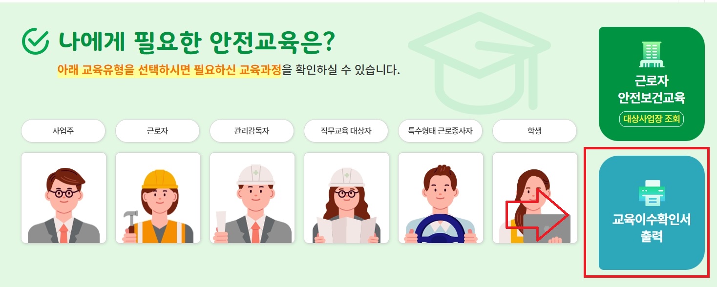 이전에 기초안전보건교육을 받으셨던 분들이나 혹은 교육받으신 지 오래되어서 기억이 안나시는 분들은 꼭 기초안전보건교육 이수확인 및 이수증을 확인하시기 바랍니다.