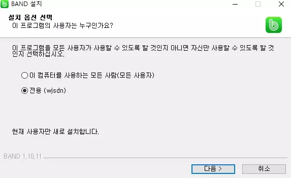 공용 컴퓨터가 아니기 때문에 전용으로 설정 후 다음을 클릭합니다.