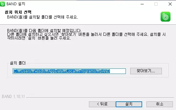 네이버 밴드 pc버전이 설치 완된것을 볼 수 있습니다.