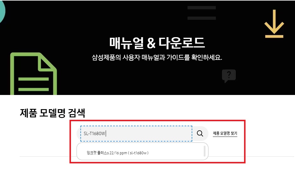 여기서 소유하고 있는 제품의 모델명을 넣어주고 검색을 클릭합니다.