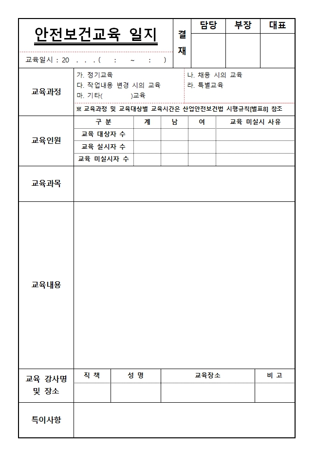 모든 산업안전교육에 쓰이는 양식입니다.