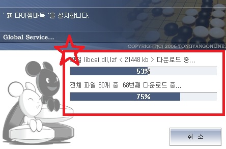6. 타이젬 바둑 설치가 완료되면 아래와 같이 자동으로 다운로드가 진행되니 기다리시면 됩니다.