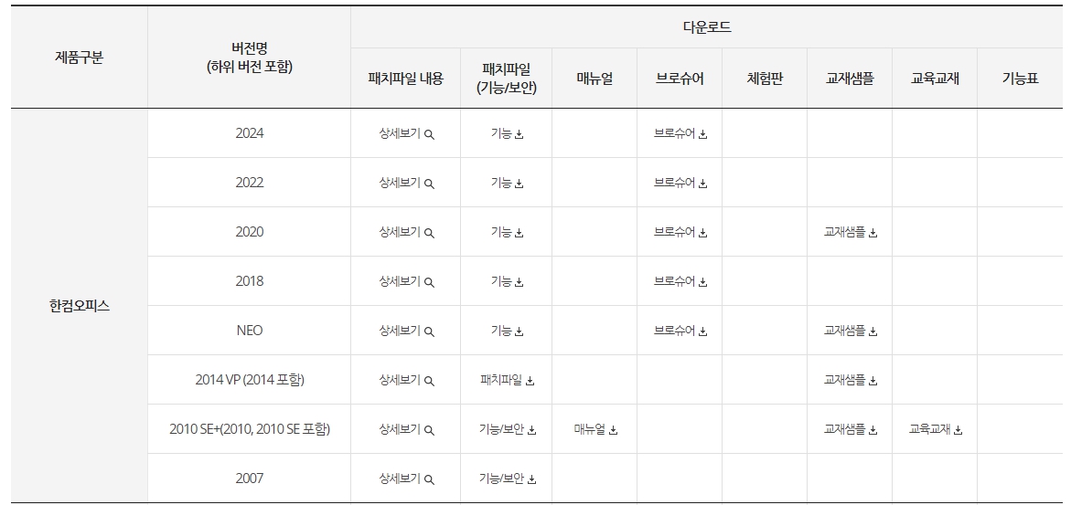 한글 뷰어 사용 환경 및 지원 파일 형식